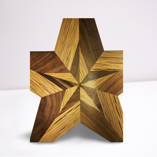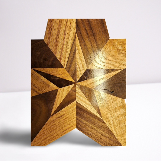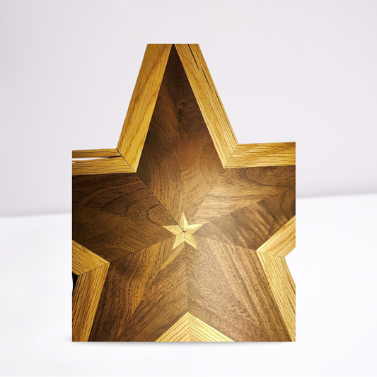 Black Walnut and Red Oak Intarsia 5 point star Natural Light Semi-Gloss/Matte Finish **FREE SHIPPING**